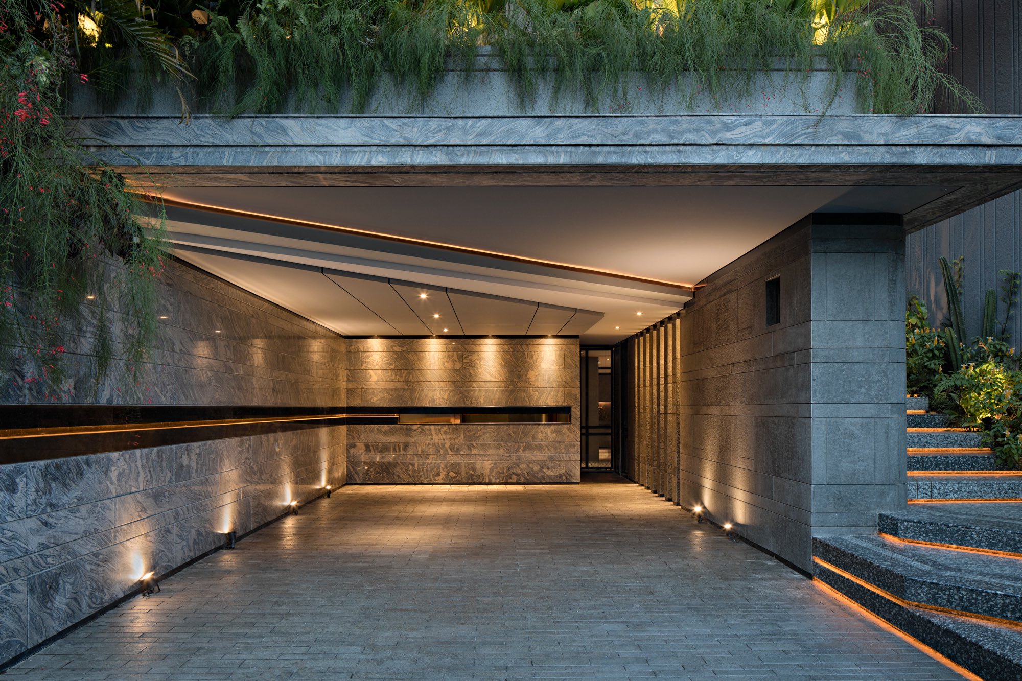 Ngôn ngữ kiến trúc hiện đại được thể hiện thông qua hình khối mạnh mẽ nhưng tiết chế. Những đường nét dứt khoát, mái đua lớn và hệ lam che nắng không chỉ tạo nên hình ảnh kiến trúc đặc trưng, mà còn đóng vai trò quan trọng trong việc kiểm soát bức xạ mặt trời và ánh sáng tự nhiên. Ánh sáng được dẫn dắt một cách có chủ ý, tạo nên sự thay đổi tinh tế của không gian theo từng thời điểm trong ngày, mang lại cảm giác sống động nhưng vẫn yên tĩnh.