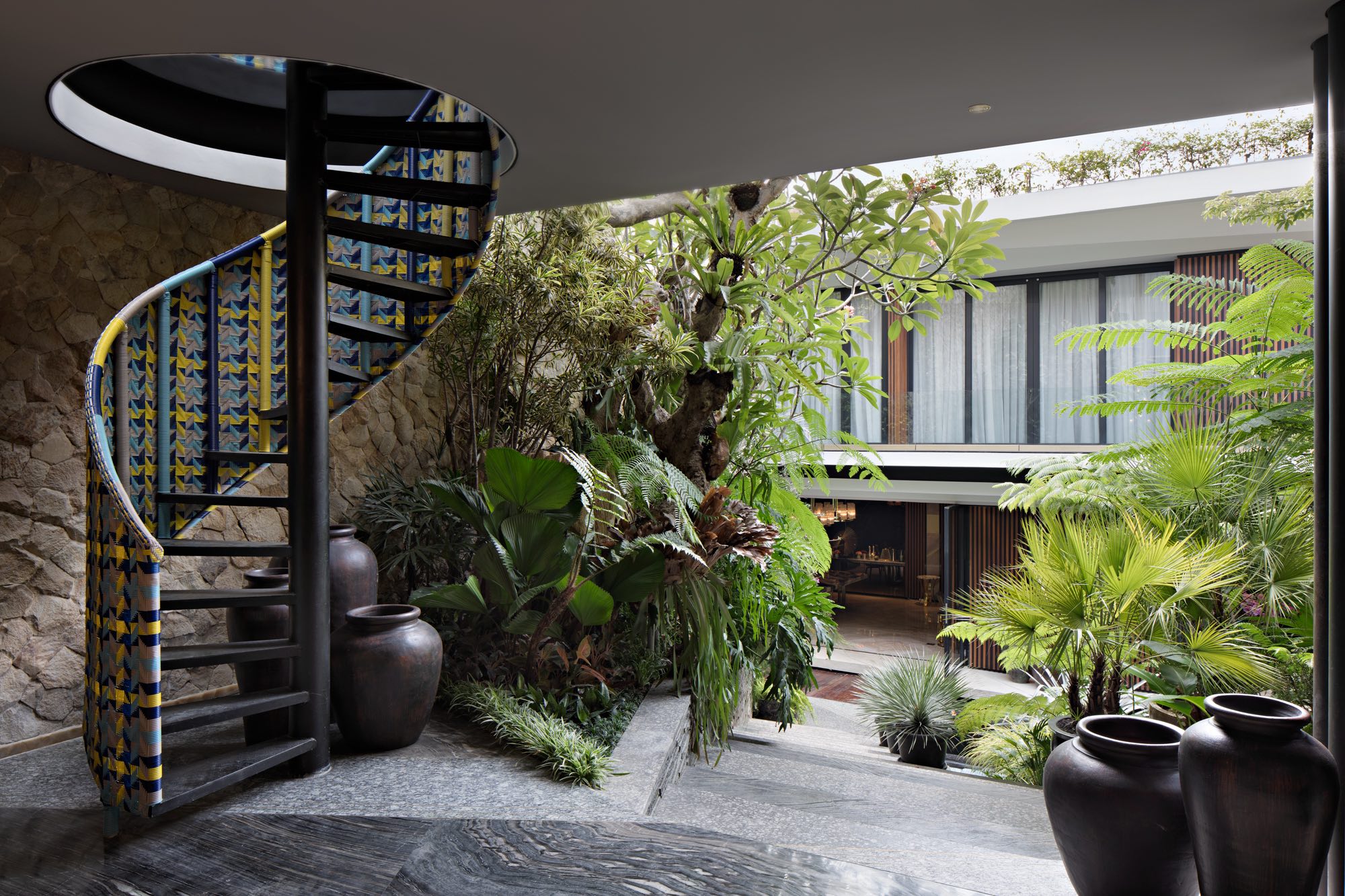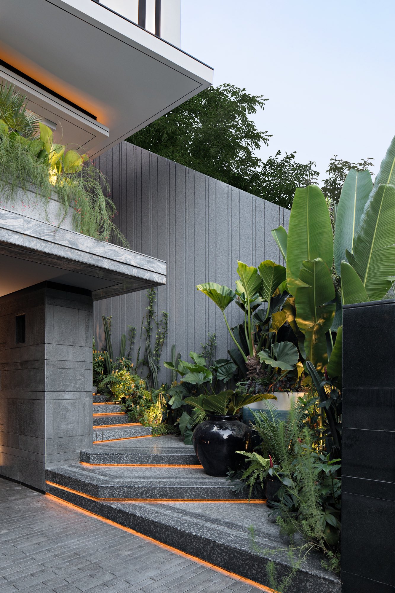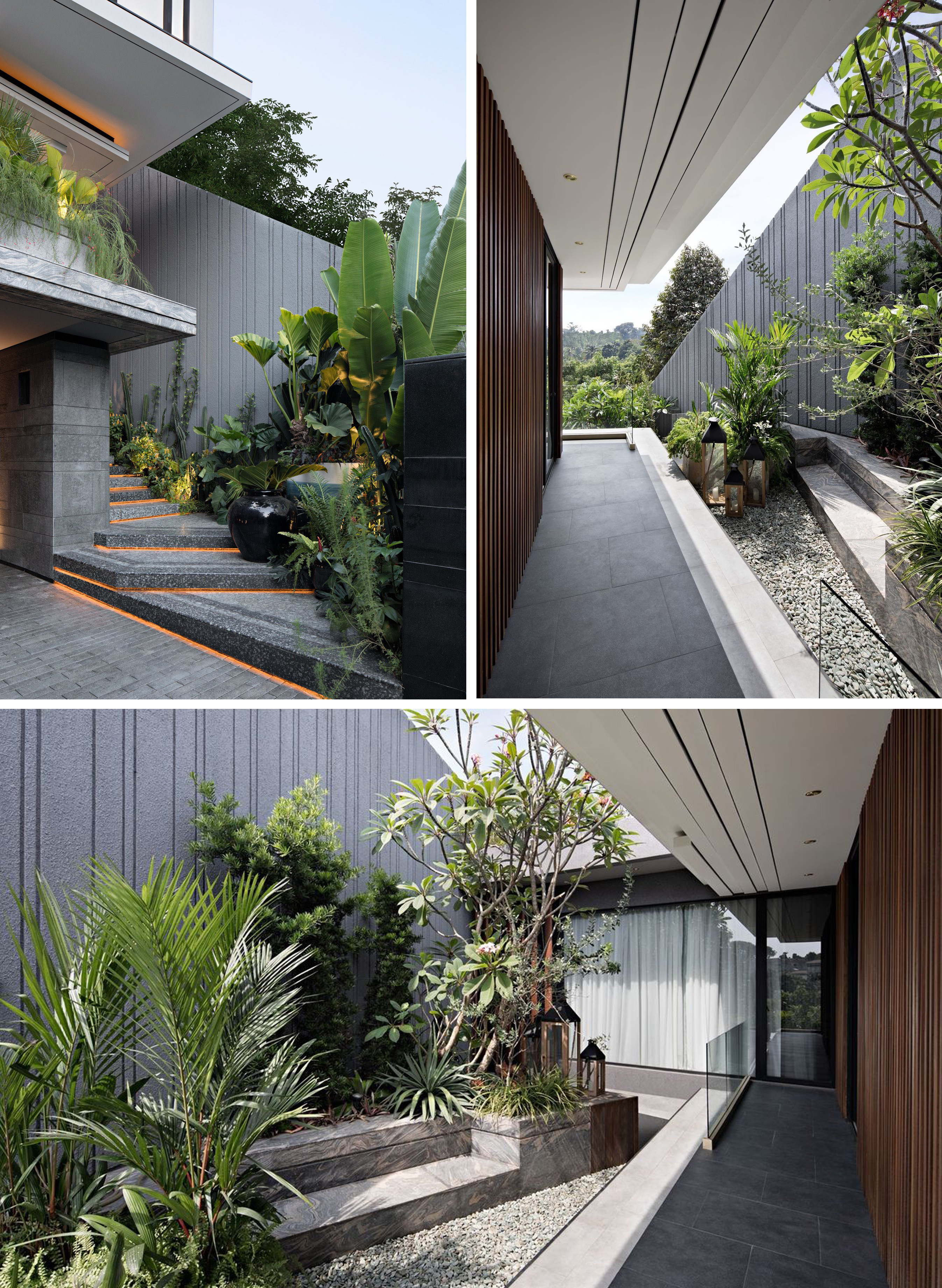 Cây xanh trong Eco Terraces Villa không mang tính trang trí đơn thuần, mà được tích hợp như một phần của cấu trúc kiến trúc. Các mảng xanh lớn giúp giảm nhiệt, lọc bụi, giảm tiếng ồn và tạo nên sự riêng tư cần thiết cho đời sống gia đình. Sự hiện diện của thiên nhiên ở nhiều cao độ khác nhau giúp ngôi nhà luôn thông thoáng, mát mẻ và gần gũi với môi trường xung quanh.