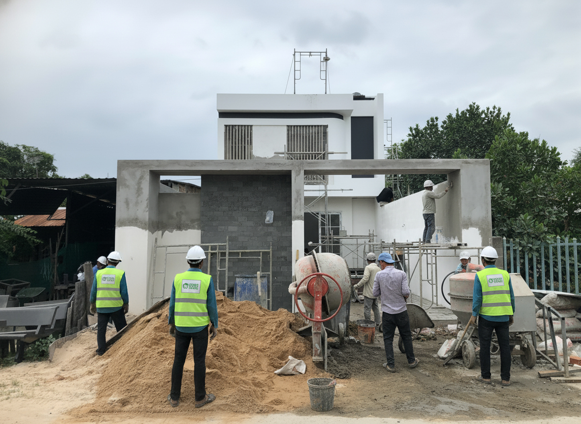 Công đoạn thi công hoàn thiện công trình bởi Green Home