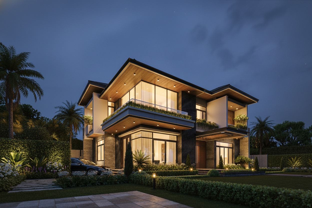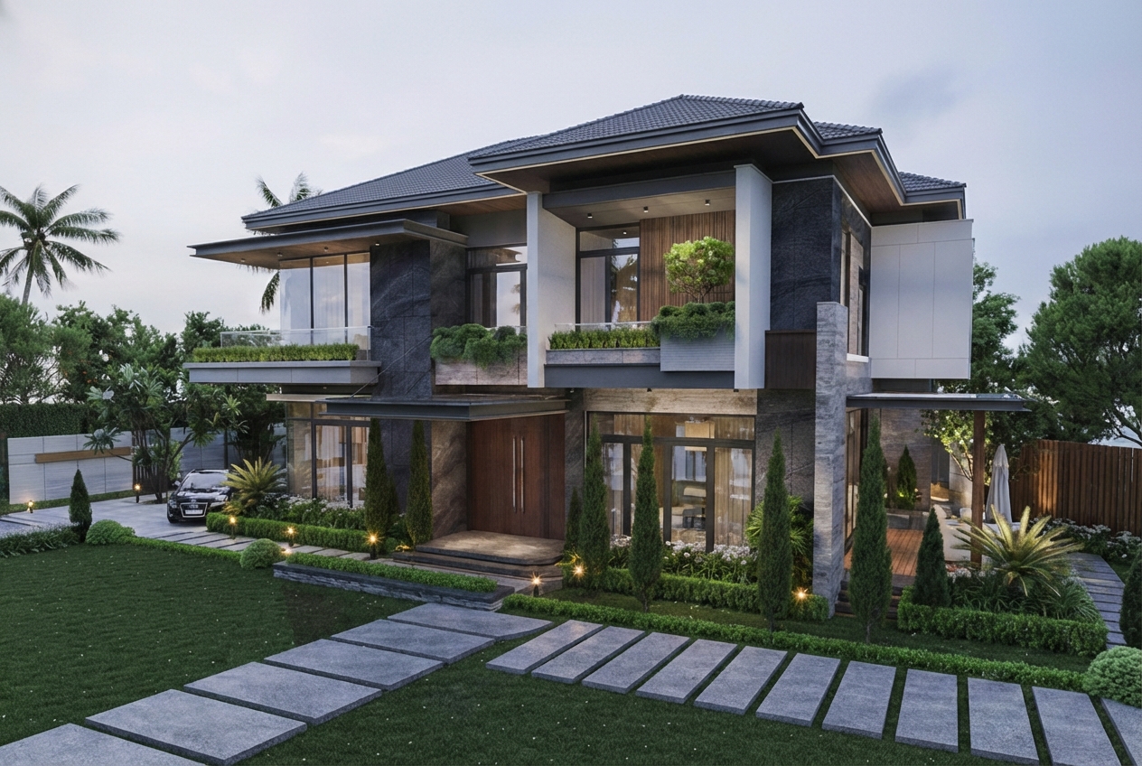 Verdant Horizon Villa được hình thành từ khát vọng kiến tạo một không gian sống hiện đại nhưng không tách rời thiên nhiên, nơi mỗi trải nghiệm sinh hoạt hằng ngày đều gắn liền với ánh sáng, gió trời và cảnh quan xanh mát. Công trình không chỉ là một ngôi nhà, mà là tuyên ngôn về lối sống bền vững, cân bằng giữa tiện nghi cao cấp và giá trị sinh thái lâu dài.